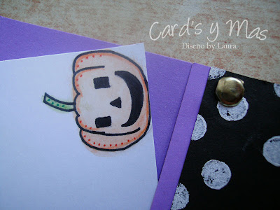 El papel naranja lo estampe yo con el buho que tambien compartio Patty y la palabra halloween, lo realice en la compu y lo imprimi en cartulina naranja.