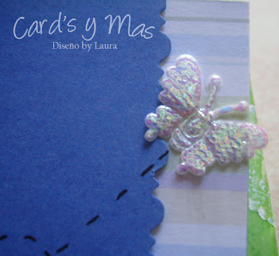 Esta es una de las maripositas bordadas, no se ve linda??? tengo que confesar que tuvo mucho éxito mi card y hasta me prometieron un encargo para un cumple de 70 años.