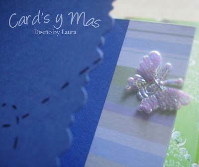 Pero bueno vamos al grano. La primera card es para cumplir con el reto nº 20 de Reto Latino y con el reto inter de mariposas de Scrap Latino donde habia que hacer una card mariposeada para intercambiar junto con algunas cositas de mariposas.