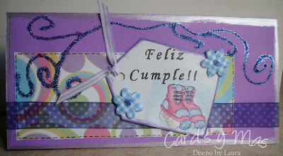 Se acuerdan del sobre para dinero que le hice a mi prima hace un tiempo??? Bueno ella me pidió que le hiciera una tarjeta parecida a una amiga y compañera suya. Y así quedo, no esta super porque la hice con muy poquito tiempo, se la hice en 20 minutos :P pero a ella le gusto.